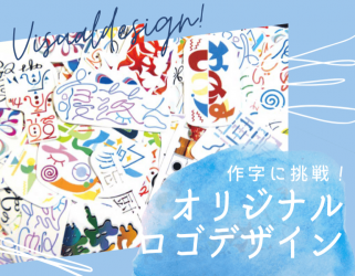 【ビジュアルデザイン】文字や写真やイラストの効果的な表現や加工を教えてもらい、作字でオリジナルロゴを制作!完成品はをスマホケースに入れて持ち歩こう!